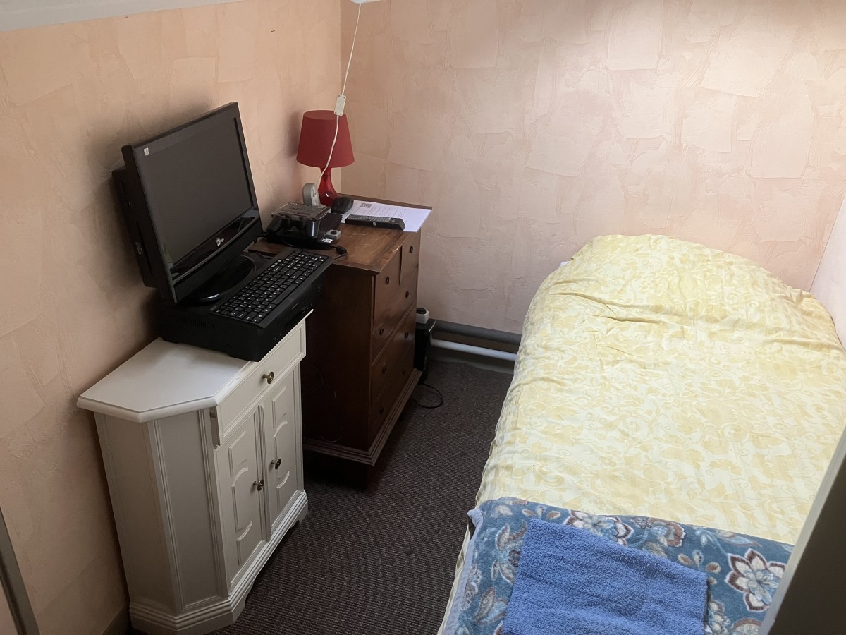 Fijne eenpersoonskamer met extra lang bed van 215cm langradiator met thermostaatkraan op de kamerVolledig nieuwe badkame... Lees meer..